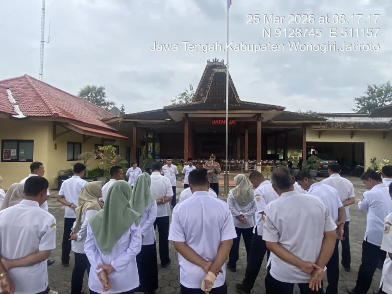 INLINK, Wonogiri – Menghadapi potensi bencana di musim kemarau, jajaran Forkopimcam Jatiroto menggelar apel kesiapsiagaan di halaman Pendopo Kecamatan Jatiroto, Kabupaten Wonogiri, Rabu (25/3/2026) pagi. Apel yang dimulai pukul 08.00 WIB tersebut dipimpin oleh Camat Jatiroto Miran dan dihadiri Kapolsek Jatiroto AKP Pudiyono, Sekcam Jatiroto, para kepala desa/lurah se-Kecamatan Jatiroto, serta perwakilan dinas dan instansi […]