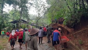 INLINK, Wonogiri – Akibat guyuran hujan deras yang cukup lama dan labilnya tebing disekitar jalan desa mengakibatkan tanah Longsor pada hari Rabu sore kemarin, Akibat dari tanah longsor ini mengakibatkan akses jalan tertutup oleh timbunan material longsor. Dan saat ini anggota Babinsa dari Koramil 10/Wuryantoro Kodim 0728/Wonogiri Serda Dwiyanto bersama warga melaksanakan pembersihan material tanah […]