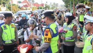Aksi Simpatik Polres Jepara, Bagikan Bunga Hingga Cokelat Saat Operasi Keselamatan Candi 2025