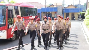 Polsek Makasar Kawal Ketat Pemulangan Jamaah Haji Kloter 01 Asal DKI Jakarta di Asrama Haji Pondok Gede