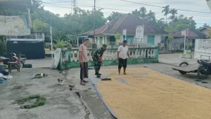 Dekat dengan Rakyat, Babinsa 02/Lateng Bantu Jemur Padi Demi Ketahanan Pangan di Desa Apha
