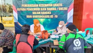 Hut Bhayangkara ke-79, Polres Pekalongan Kota Gelar Bakti Kesehatan Untuk Driver Ojol.