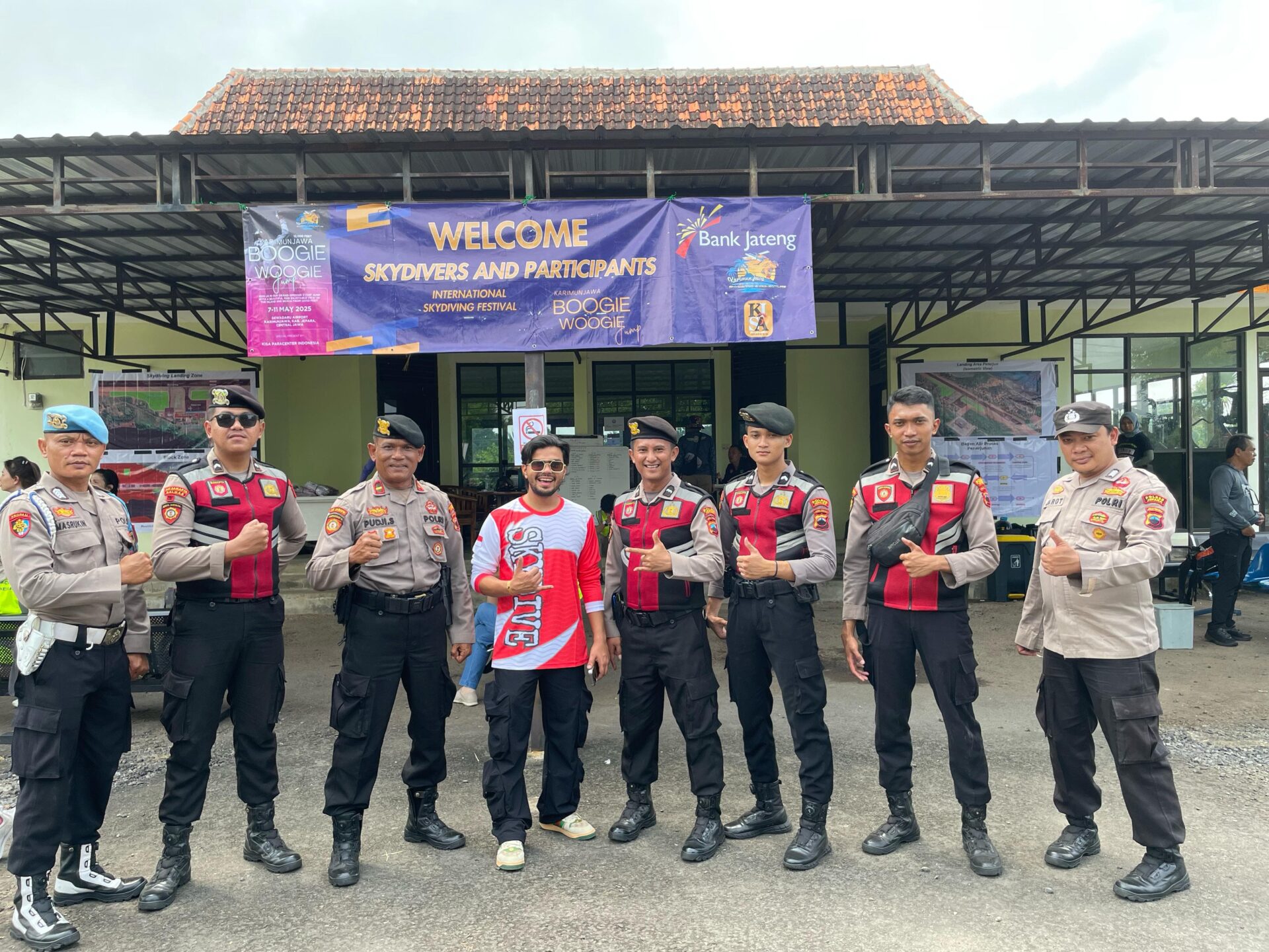 INLINK, Jepara | Kepolisian Resor (Polres) Jepara, Polda Jawa Tengah, menyiagakan puluhan personel untuk amankan jalannya kegiatan International Skydiving Festival dengan tema ‘Karimunjawa Boogie Woogie Jump’ yang digelar di Bandar Udara Dewadaru Karimunjawa, Kecamatan Karimunjawa, Kabupaten Jepara, pada Rabu (8/5/2025).