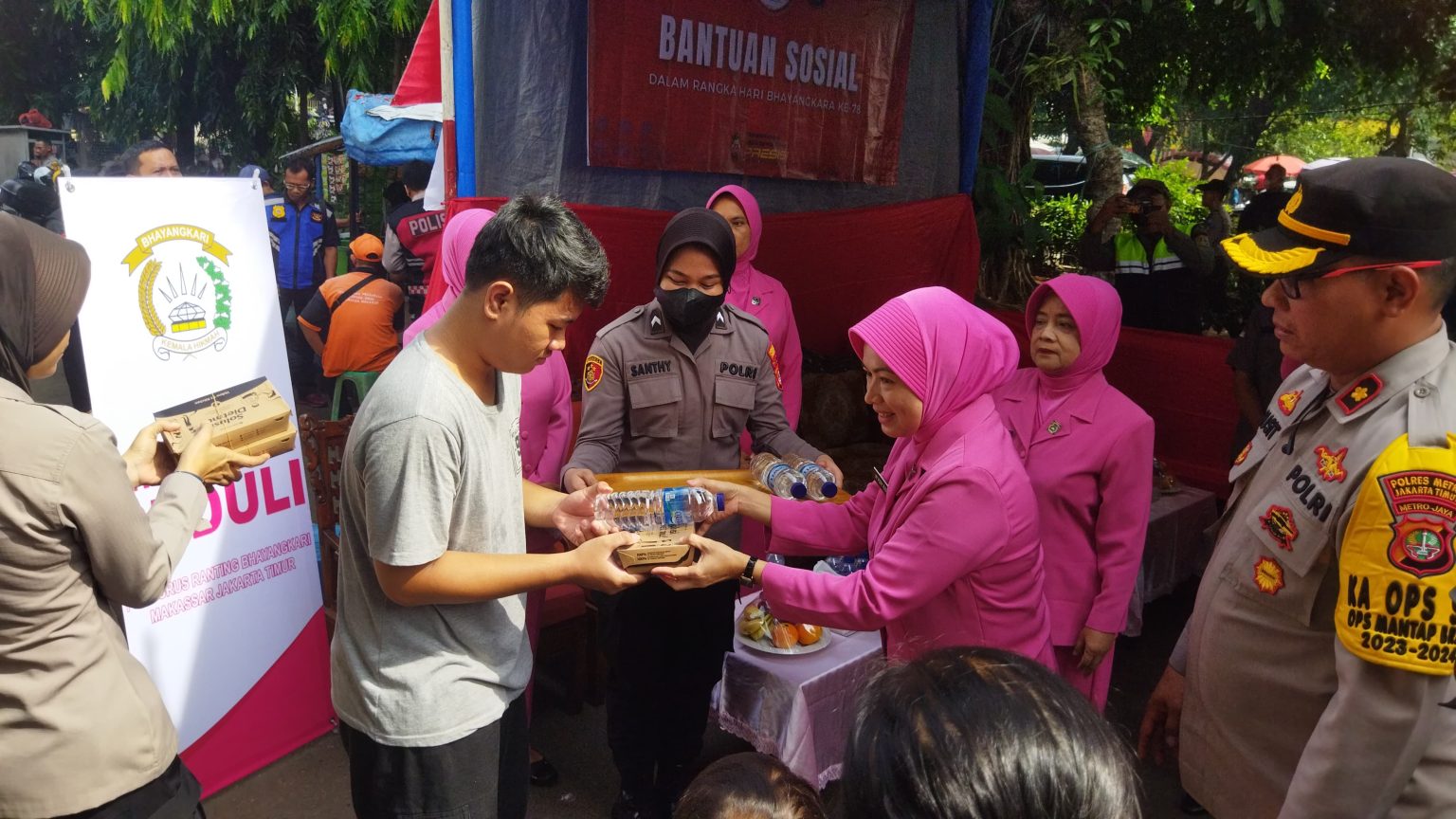 Jakarta – Polres Metro Jakarta Timur bersama Bhayangkari dan 3 Pilar Kec. Makasar melaksanakan bakti sosial pemberian 300 Nasi Box & Air mineral untuk Warga Masyarakat di Jl. Kerja Bakti Kel. Makasar Kec. Makasar Jakarta Timur. Kamis (13/06/24) pagi.