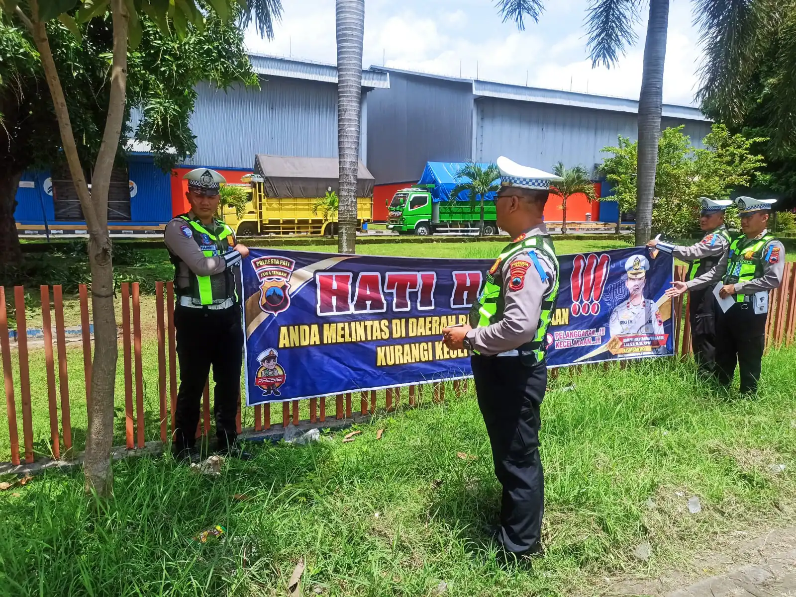 INLINK, Pati – Ruas Jalan Pati–Kudus dan Pati–Juwana sejak Selasa (18/11) mendadak dipenuhi banner keselamatan. Banyak pengguna jalan bertanya-tanya, apa yang sebenarnya terjadi? Ternyata, Satuan Lalu Lintas Polresta Pati sedang menggelar giat massif pemasangan banner dan pembagian brosur dalam rangka Operasi Zebra Candi 2025.