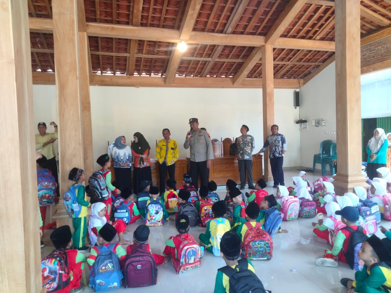Seperti yang dilakukan Kanit Binmas Polsek Donorojo Aipda Mayon Yusuf S bersama personel lainnya saat mengunjungi TK Roudlotul Athfal 01 Desa Blingoh, Kecamatan Donorojo, Kabupaten Jepara, Selasa (11/6/2024).