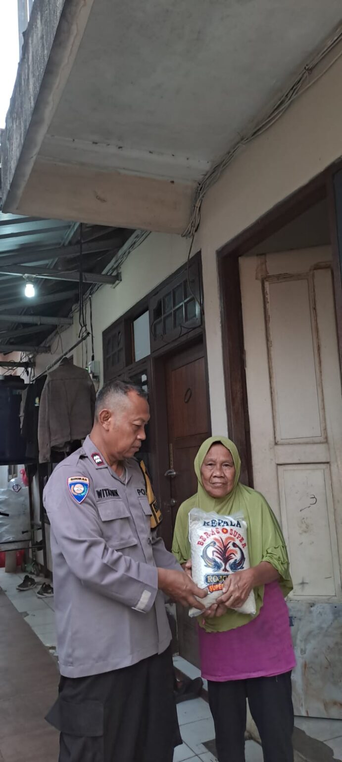 Jakarta – Bentuk kepedulian Bhabinkamtibmas kepada warganya, Bhabinkamtibmas Kel. Cijantung dan Bhabinkamtibmas Kel. Gedong melaksanakan kegiatan sambang dan membagikan sembako.