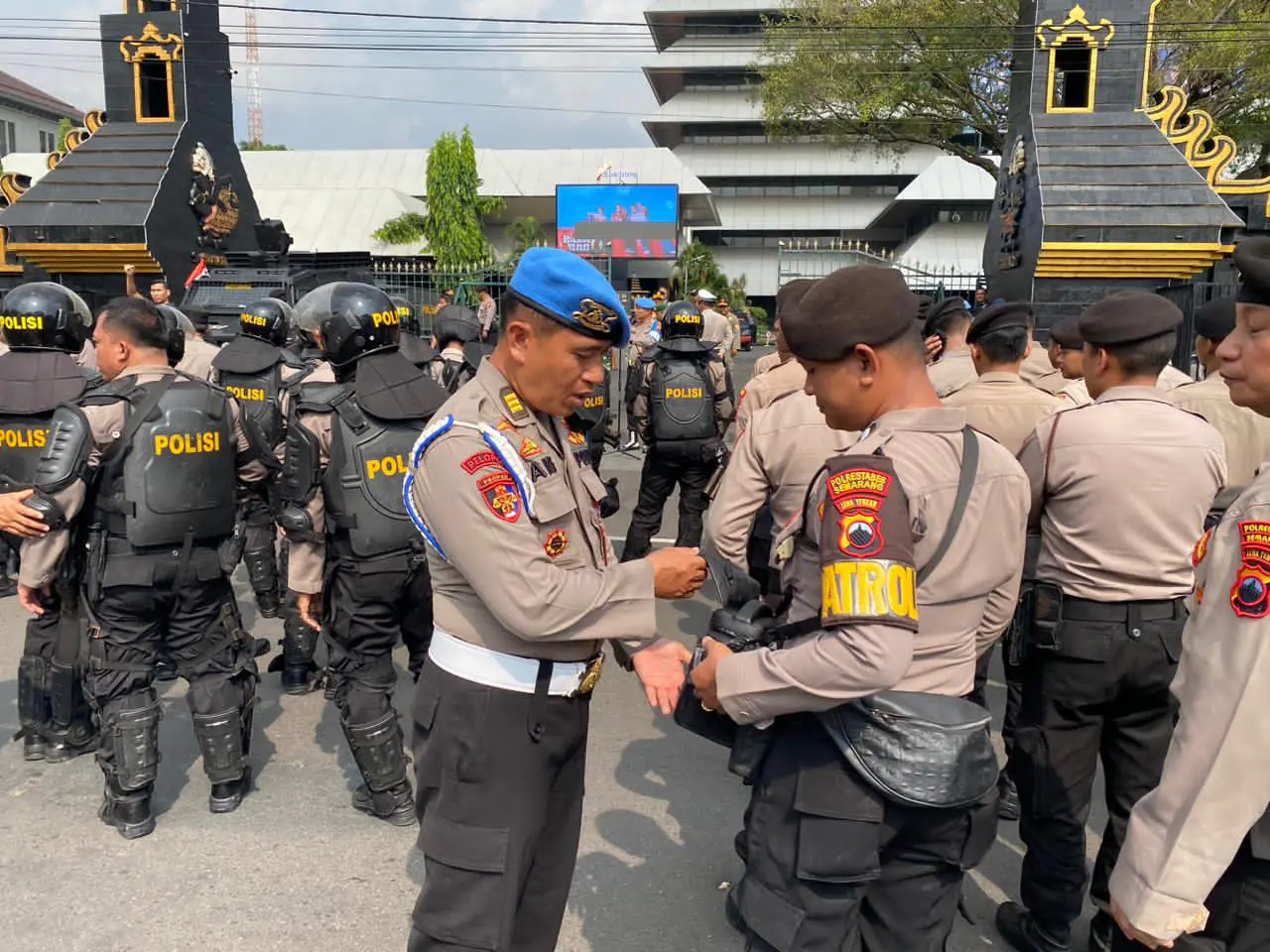 INLINK, Kota Semarang | Bidpropam Polda Jawa Tengah melakukan pengecekan personel usai apel kesiapan pengamanan aksi yang digelar oleh BEM Semarang Raya dan GERAM Jateng di depan Kantor Gubernur Jawa Tengah pada Senin, (20/10/2025). Langkah ini dilakukan sebagai wujud komitmen pengawasan ketat terhadap personel sekaligus memastikan pengamanan aksi unjuk rasa berlangsung humanis dan profesional.