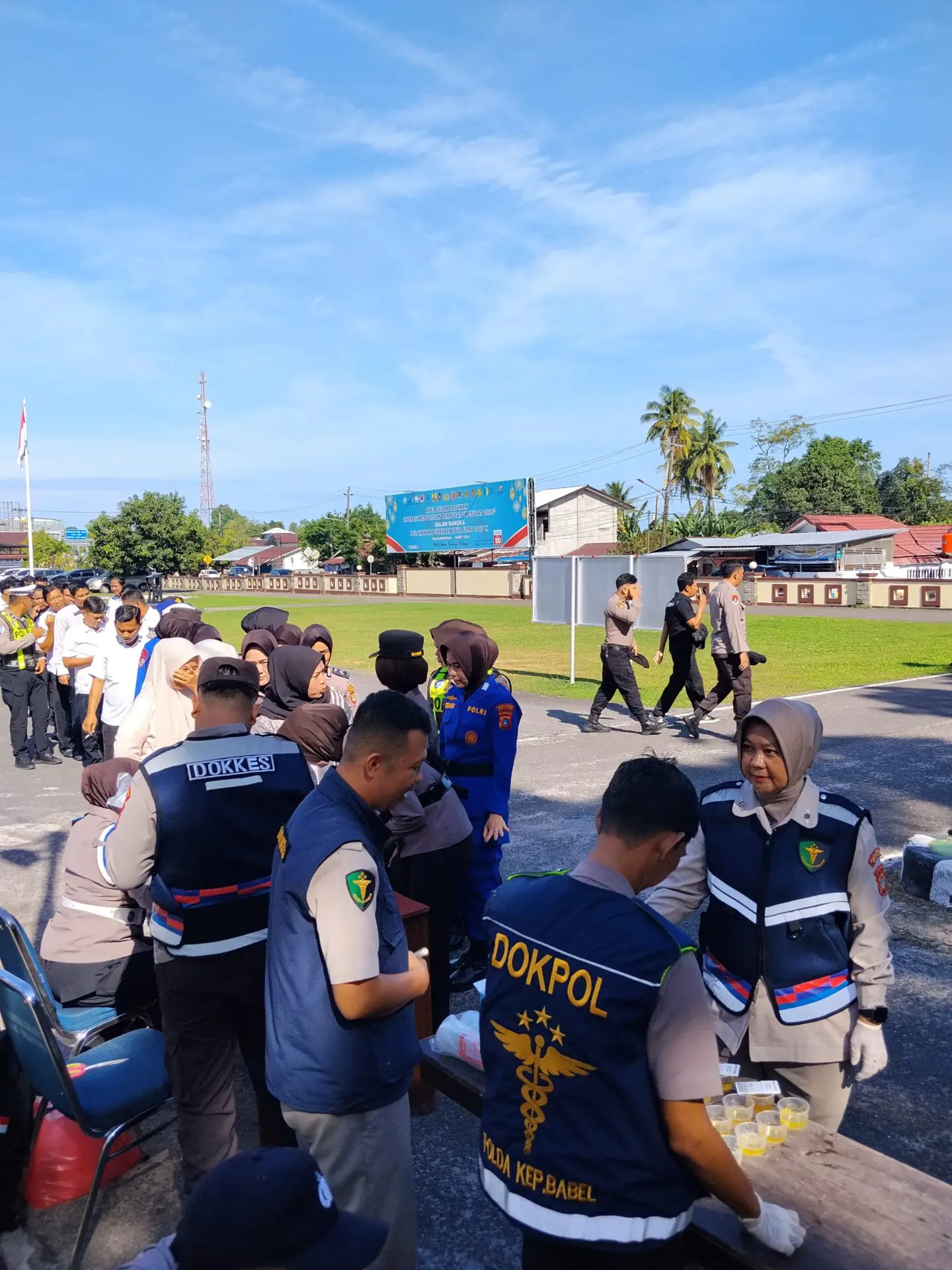 Kegiatan yang dimulai sejak pukul 08.00 WIB tersebut dipimpin oleh Iptu Minarno, S.H selaku Ps. Paurbinplin Subbidprovos Bidpropam Polda Kep. Babel, dengan melibatkan personel Provos Bidpropam Polda Kep. Babel, Sipropam Polres Belitung, serta Urkes Polres Belitung.