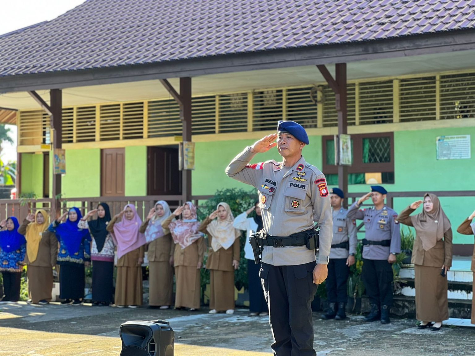 Demi menciptakan generasi penerus bangsa yang mengerti akan makna Pacasila Satbrimob Polda Kalbar kembali melaksanakan kegiatan Brimob Go To School di SMPN 7 Sungai Raya, Kabupaten Kubu Raya. Kegiatan Brimob Go To School yang dilaksanakan oleh Satbrimob Polda Kalbar pada hari ini diawali dengan melaksanakan upacara bendera kemudian dilanjutkan dengan mengedukasi para murid tentang makna dari Pancasila. Nilai-nilai Pancasila memang penting untuk diperkenalkan kepada anak-anak sejak dini dengan tujuan agar mereka dewasa nanti mereka sudah terbiasa dengan perbuatan dan tingkah laku yang sesuai dengan nilai-nilai Pancasila. Dikegiatan Brimob Go To School hari ini personel Satbrimob Polda Kalbar juga menjelaskan makna-makna yang terkandung ditiap-tiap sila seperti pada sila pertama berupa cinta kasih, menjaga toleransi dan saling menghormati perbedaan kepercayaan. Kemudian sila kedua yaitu setara atau memperlakukan orang lain atau sesama dengan adil dan manusiawi. Sila ketiga yaitu harmoni atau mengutamakan kepentingan Indonesia diatas kepentingan pribadi maupun kelompok. Sila keempat yaitu demokratis atau memberikan kesempatan kepada setiap orang untuk bebas berekspresi serta berpendapat kemudian yang terakhir sila kelima yang mengajarkan kita tentang gotong royong. Selain mengedukasi kepada para siswa tentang makna Pancasila dikegiatan Brimob Go To School kali ini personel juga memberikan edukasi kepada para murid tentang kenakalan remaja yang belakangan ini sangat meresahkan masyarakat banyak. Disini personel Satbrimob Polda Kalbar menjelaskan tentang dampak negatif yang ditimbulkan dari kenakalan remaja kepada para murid seperti contohnya bisa merugikan diri mereka pribadi maupun orang lain.