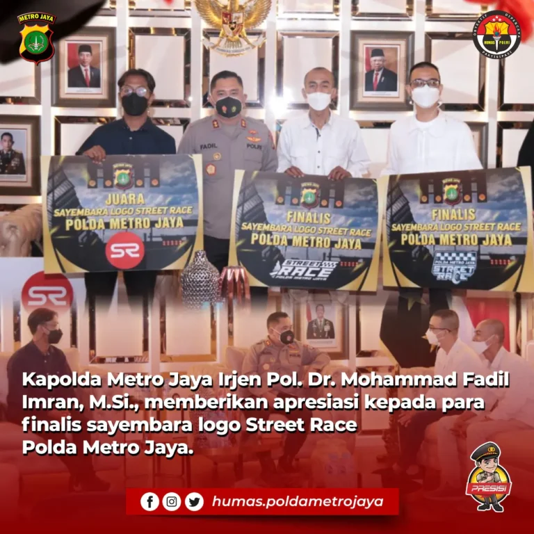 Inlink.id Jakarta, Kapolda Metro Jaya Irjen Pol Dr. H. MOH FADIL IMRAN, M.Si. didampingi oleh Dir. Lantas , Dir Intelakam, Dirreskrimum, Dirsamapta, Kabid Humas dan Kabidkum melaksanakan silahturahmi sekaligus memberikan apresiasi dan hadiah berupa Macebook kepada 3 Finalis Sayembra logo Street Race Polda Metro Jaya pada 17 Maret 2022 bertempat di lobi Gedung Promoter Polda […]