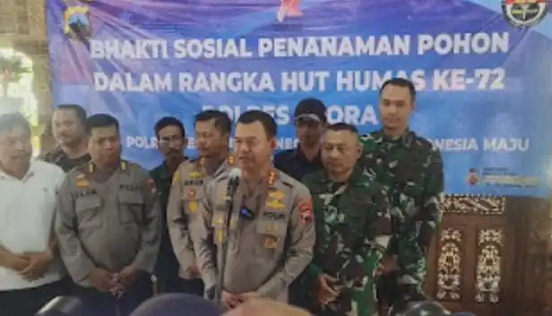 INLINK,Blora | Kepolisian Daerah Jawa Tengah Melalui Bidang Humas (Bidhumas) menggelar kegiatan bakti sosial penanaman pohon dan penebaran benih ikan di wilayah Kabupaten Blora, Jumat, (13/10/2023).