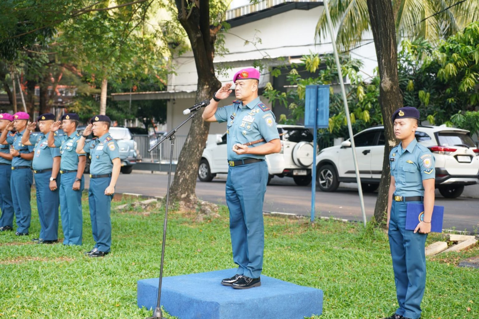 TNI AL-Dispenlantamal3. Komandan Pangkalan Utama TNI Angkatan Laut (Danlantamal) III Jakarta Brigjen TNI (Mar) Harry Indarto, S.E., M.M. selaku Ketua Panitia Daerah (Panda) Lantamal III Jakarta melepas keberangkatan 108 calon Bintara (Caba) prajurit karier (PK) TNI Angkatan Laut gelombang I tahun 2024 ke seleksi tingkat pusat di Lembaga Penyedia Tenaga TNI Angkatan Laut (Lapetal) Malang bertempat di lapangan apel Mako Lantamal III Jakarta Jl. Gunung Sahari No. 2 Ancol, Jakarta Utara, Rabu (17/04/2024).