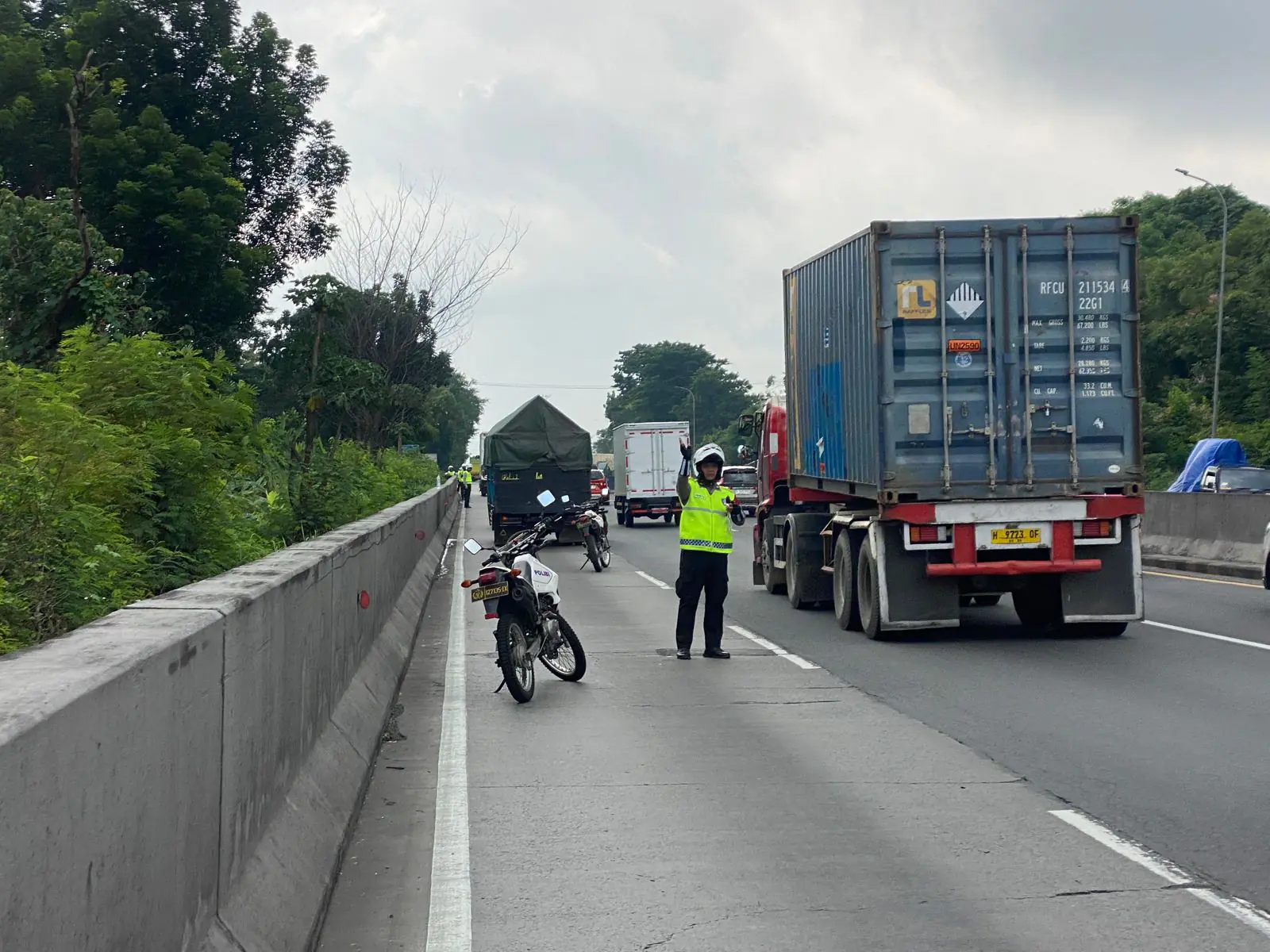 Meski di lokasi kejadian sempat diguyur hujan deras, hal tersebut tidak menyurutkan kesiapsiagaan petugas. Tim tetap berada di lapangan untuk memastikan arus kendaraan kembali lancar dan aman bagi para pengguna jalan.
