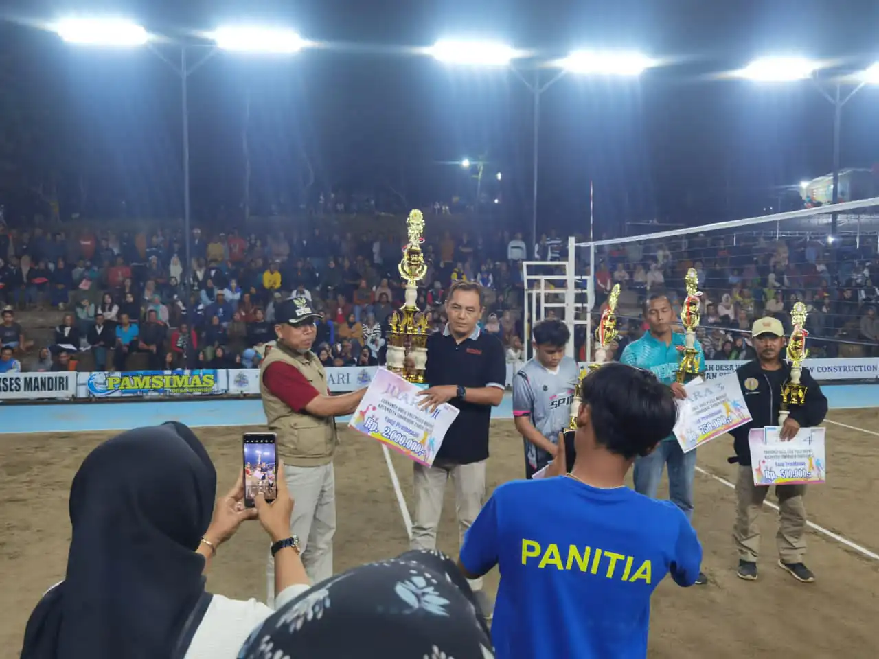 INLINK, WONOGIRI – Turnamen Bola Voli Piala Bupati tahun 2025 yang digelar di Kecamatan Sidoharjo, Wonogiri, sukses menarik perhatian ribuan warga. Pertandingan final yang digelar pada Minggu (21/9/2025) malam di Lapangan Voli Pager Jurang, Desa Widoro, berlangsung meriah dan dipadati sekitar 500 penonton.