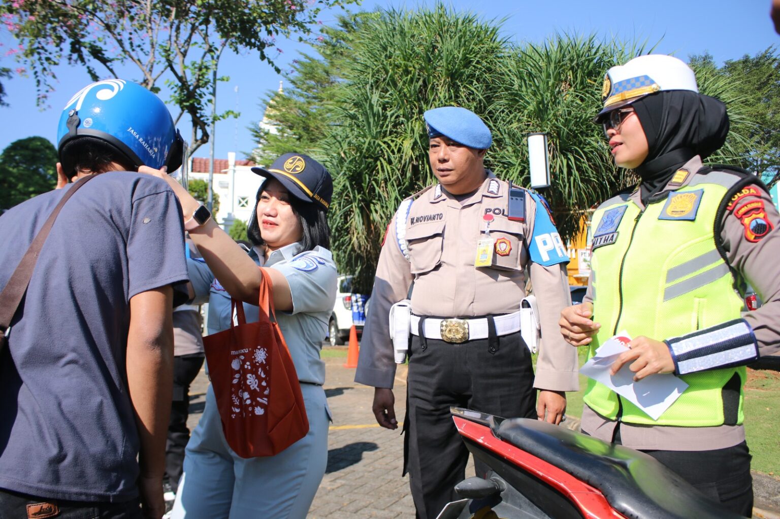 Kegiatan sosialisasi ini juga melibatkan pembagian stiker, pamflet, dan spanduk yang berisi informasi keselamatan berlalu lintas. Masyarakat yang tertib dalam berlalu lintas diberikan apresiasi berupa cinderamata, suvenir, maupun helm.