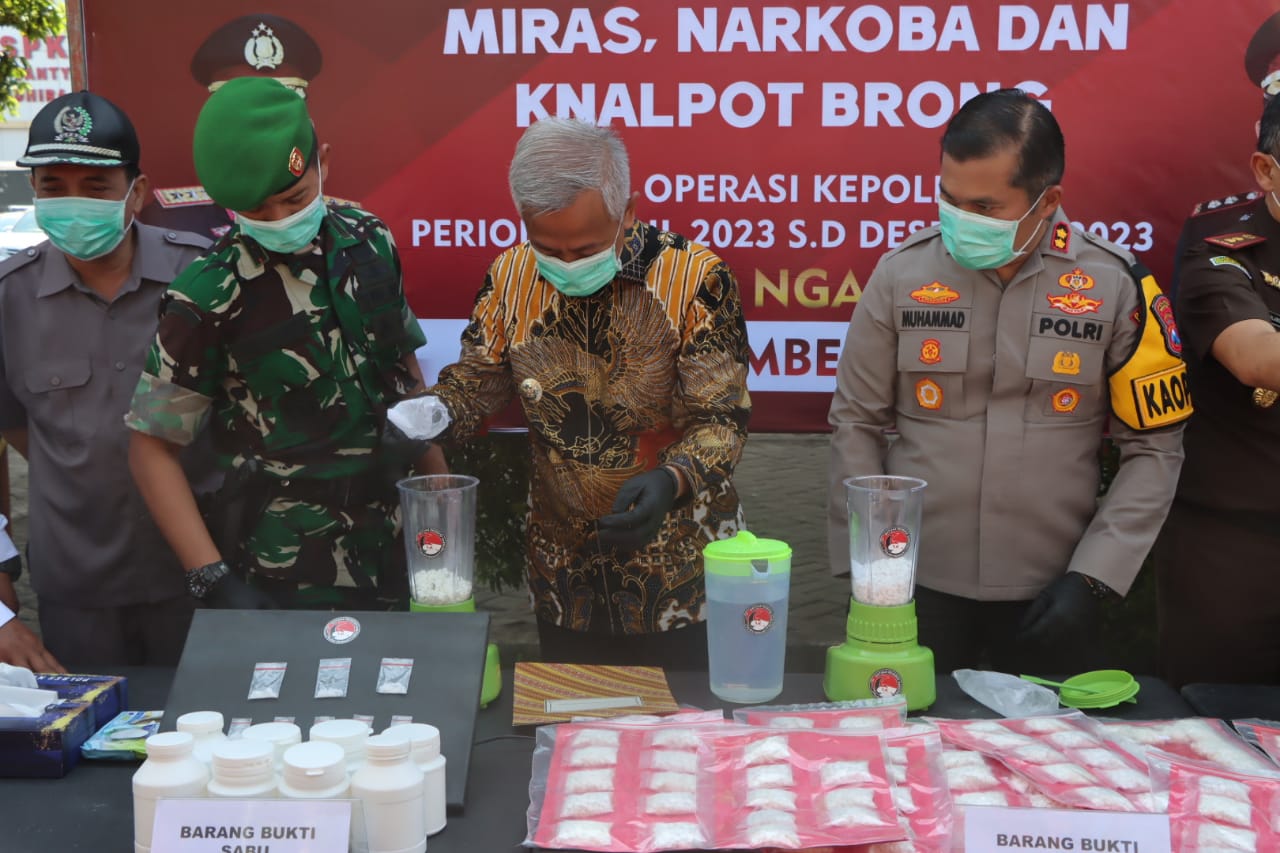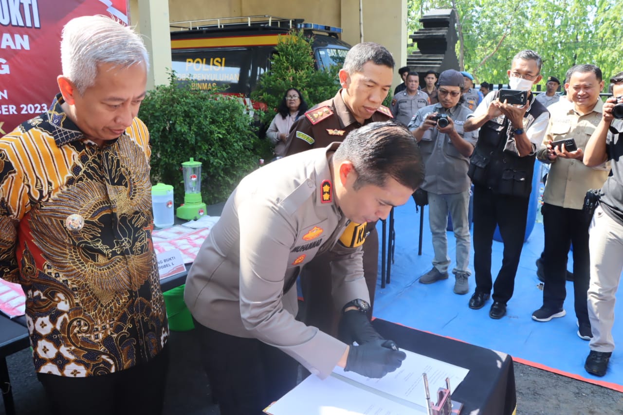 AKBP Muhammad mengungkapkan barang bukti yang dimusnahkan adalah Sabu seberat 8.5 gram, Okerbaya sebanyak 32.800 butir, 944,4 liter Arak Jowo, 2 botol Anggur merah, 6 botol Kolencu, Knalpot brong 241 unit dan velg modifikasi 37 unit.