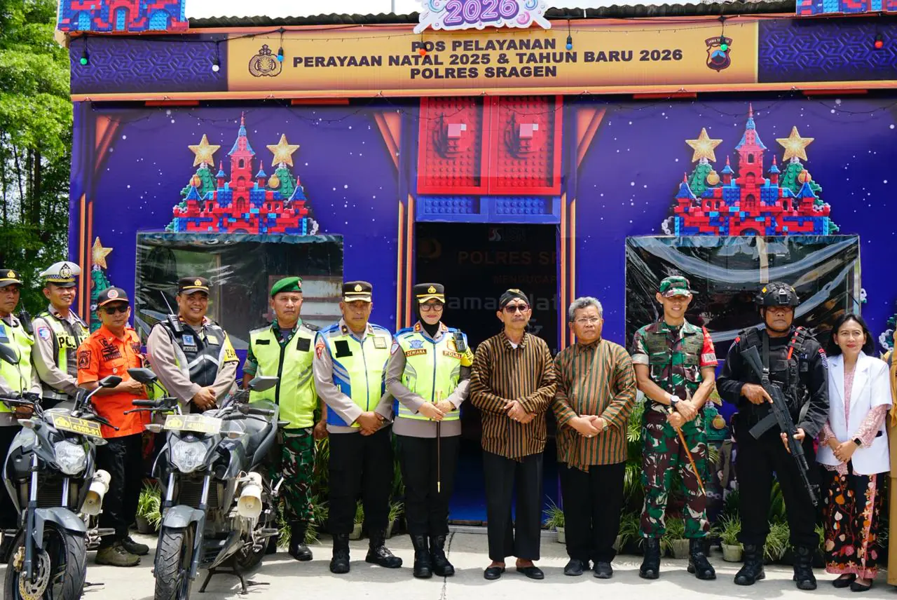 INLINK, Sragen, Jateng | Menjelang puncak arus libur Natal 2025 dan Tahun Baru 2026 (Nataru), jajaran Polres Sragen menunjukkan kesiapsiagaan maksimal. Kapolres Sragen AKBP Dewiana Syamsu Indyasari, bersama Bupati Sragen Sigit Pamungkas dan jajaran Forkopimda Kabupaten Sragen, turun langsung ke lapangan untuk melakukan pengecekan total terhadap tujuh Pos Pengamanan dan Pelayanan Operasi Lilin Candi 2025, Senin pagi (22/12/2025).