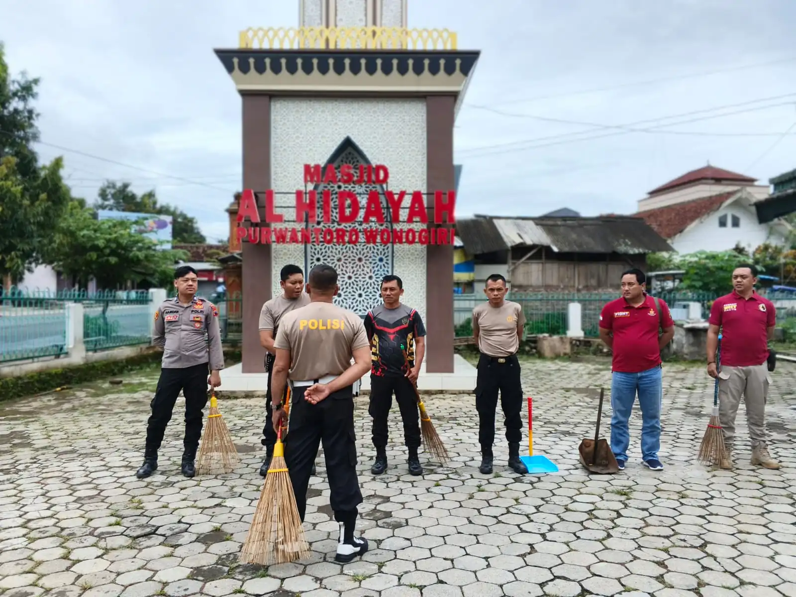 INLINK, Wonogiri – Menyambut bulan suci Ramadan 1447 Hijriah, jajaran Polsek Purwantoro Polres Wonogiri menggelar kegiatan manajemen kebersihan di Masjid Al Hidayah, Kecamatan Purwantoro, Kabupaten Wonogiri, Jumat (13/2/2026) pagi.