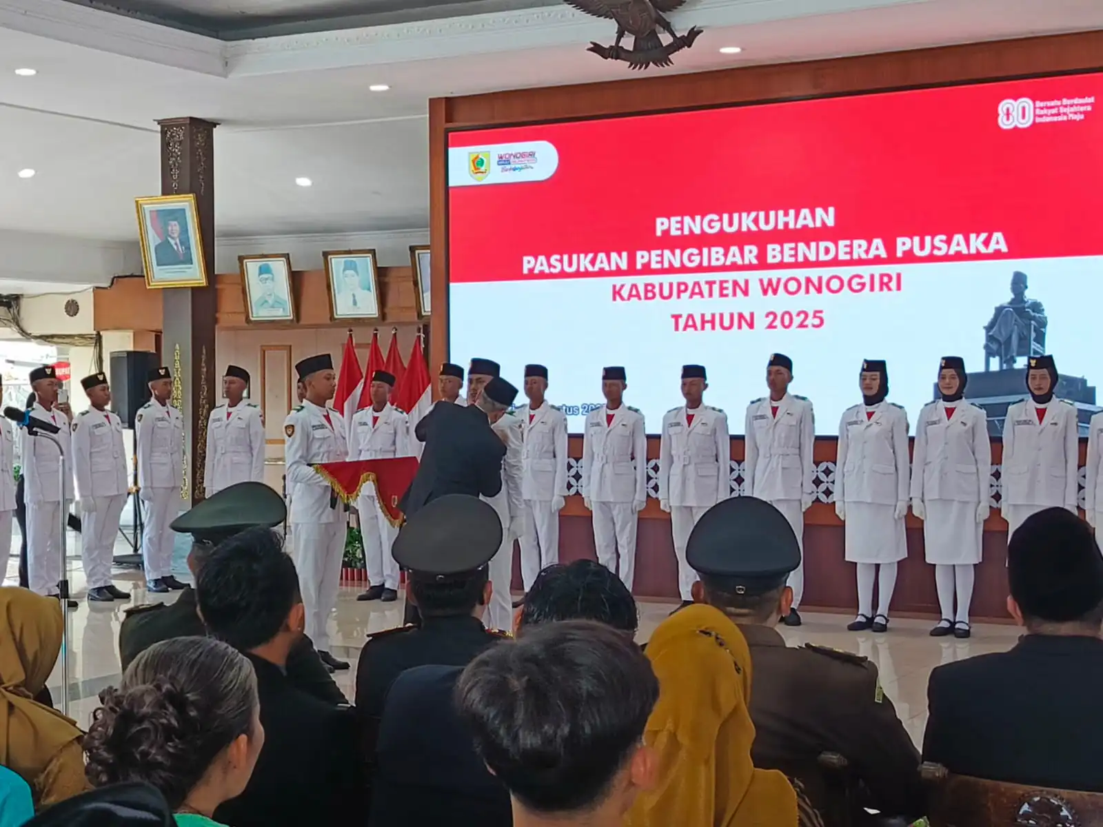 ​Pengukuhan ini menandai kesiapan puluhan pelajar terbaik dari berbagai sekolah di Wonogiri untuk mengemban tugas mulia mengibarkan bendera pusaka pada perayaan Hari Ulang Tahun (HUT) ke-80 Kemerdekaan Republik Indonesia pada 17 Agustus mendatang.