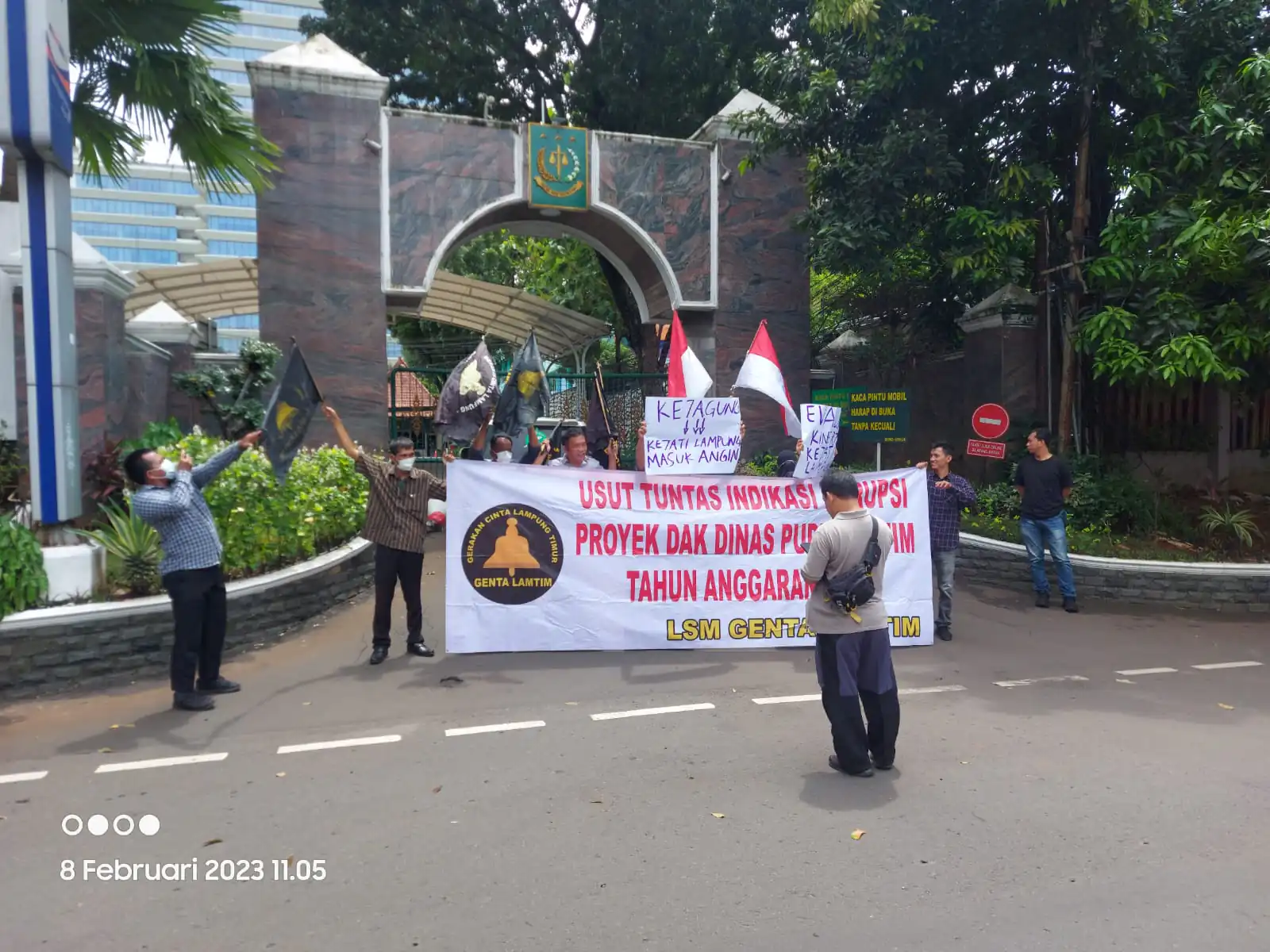 INLINK, Jakarta | Lembaga Swadaya Masyarakat Gerakan Cinta Lampung Timur, (LSM Genta Lamtim) benar benar menggelar aksi masa di depan Kejaksaan Agung Republik Indonesia, Rabu, 8 /02/2022.