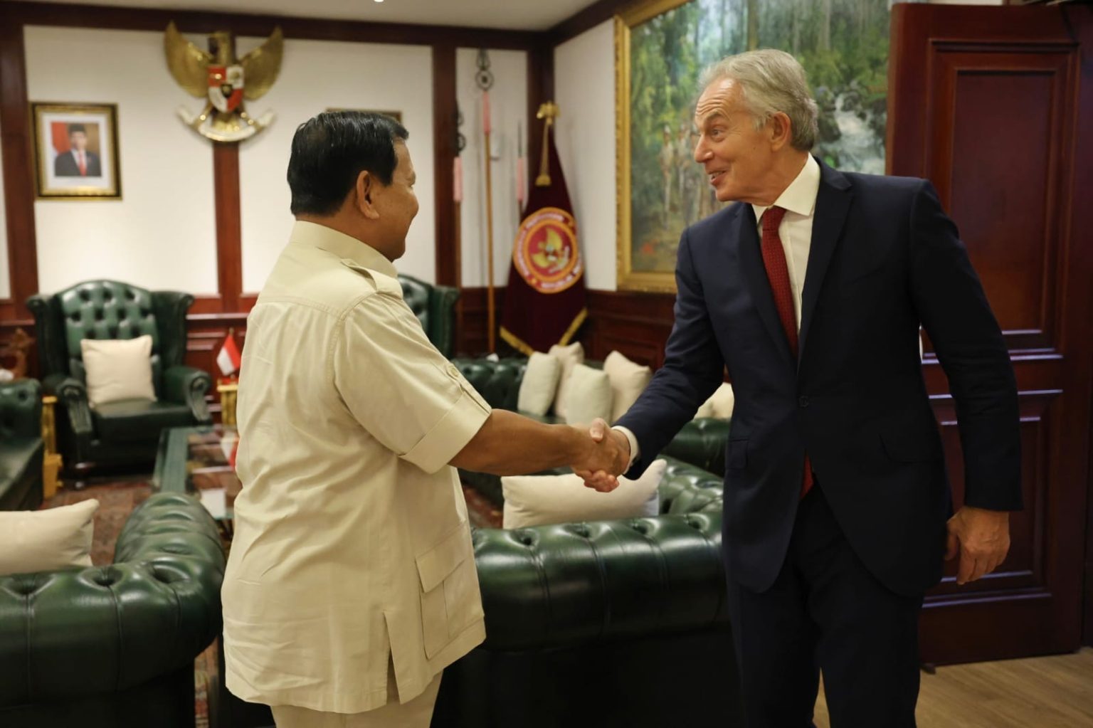 “Terima kasih atas kunjungan H.E. Mr. Tony Blair, ke Kementerian Pertahanan,” sapa Menhan Prabowo.