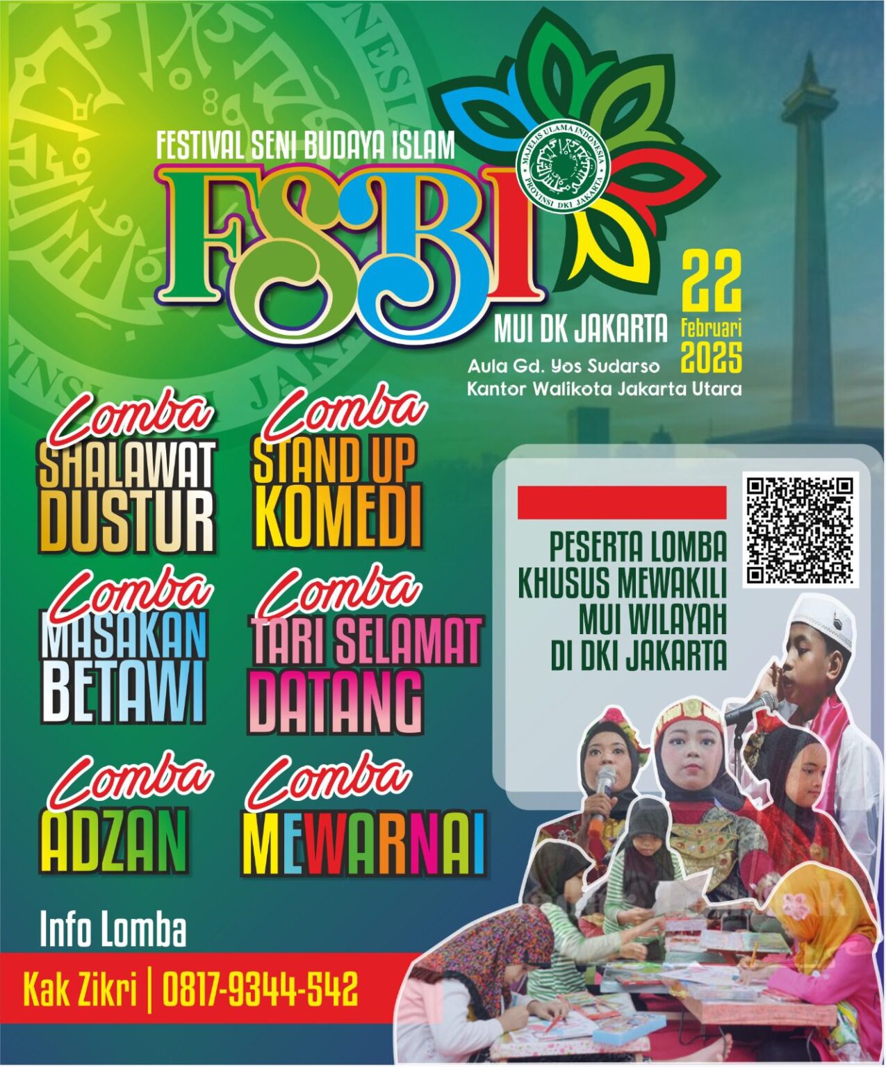 INLINK,JAKARTA | Dalam rangka menyambut 5 abad kota Jakarta, Majelis Ulama Indonesia (MUI) DKI Jakarta Bidang Seni Budaya Islam, berencana menggelar event “Festival Seni dan Budaya Islam pada tanggal 22 Februari 2025 berlokasi di Kantor Walikota Jakarta Utara.
