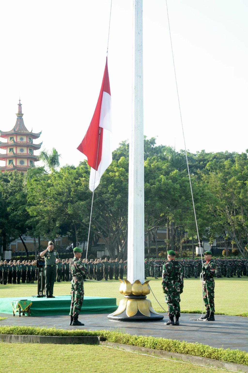 INLINK, Semarang – Pangdam IV/Diponegoro Mayjen TNI Deddy Suryadi, S.I.P., M.Si., sampaikan penekanan Panglima TNI pada Upacara Bendera 17-an Bulan April kepada seluruh Prajurit dan PNS terkait dengan perkembangan situasi hingga peningkatan disiplin Prajurit, bertempat di Lapangan Makodam. Rabu (17/4/2024).