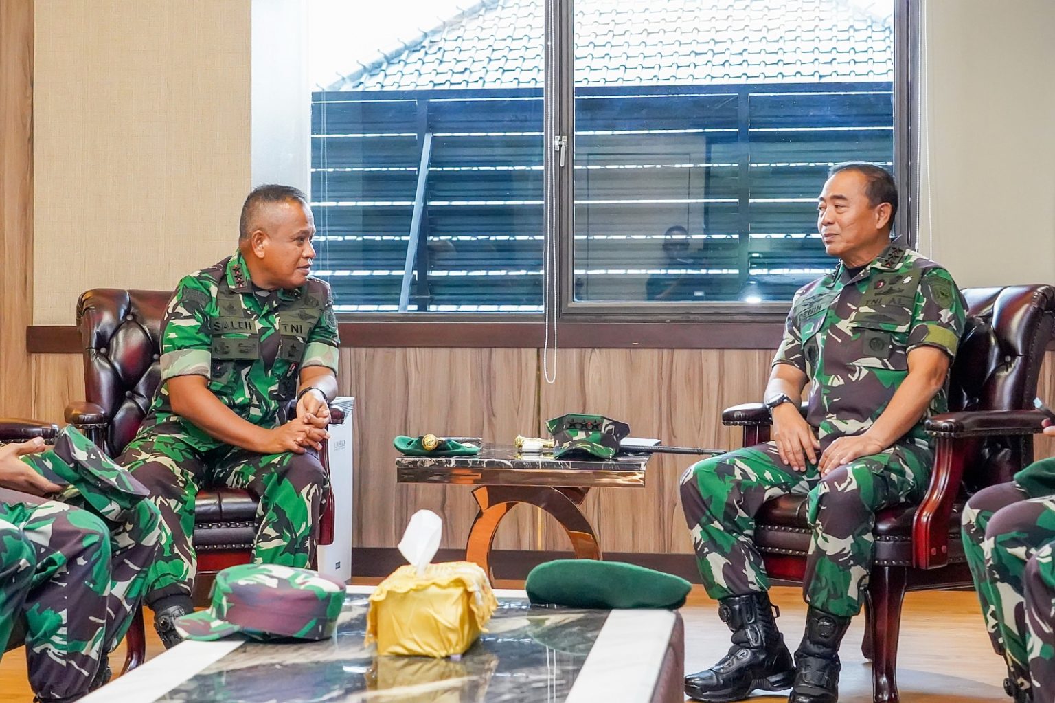 Jakarta Panglima Kostrad (Pangkostrad) Letnan Jenderal TNI Muhammad Saleh Mustafa menerima kunjungan Panglima Komando Armada Republik Indonesia (Pangkoarmada RI) Laksamana Madya TNI Dr. Denih Hendrata, S.E., M.M., CHRMP d Markas Kostrad, Gambir, Jakarta Pusat. Jumat (22/3/2024).