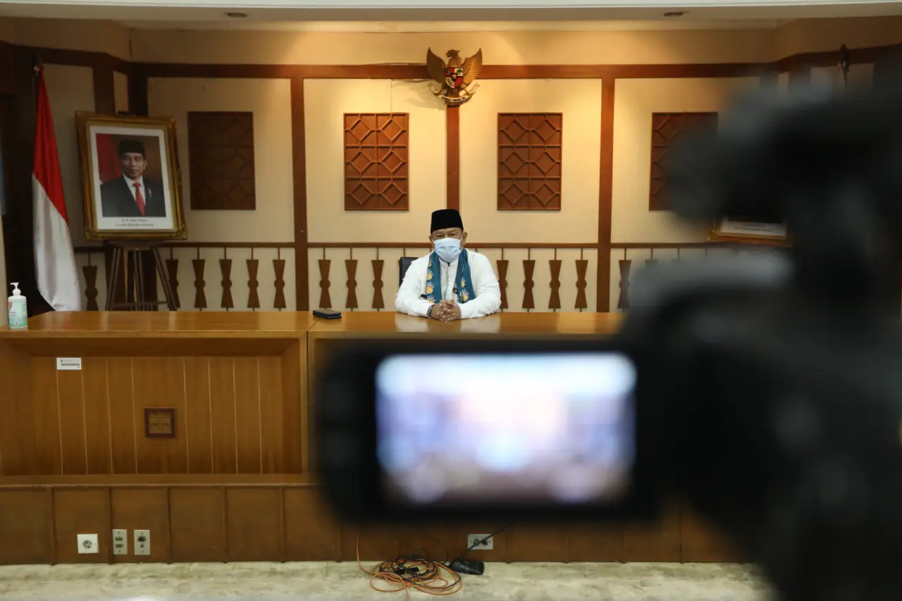 Inlink.id Jakarta Utara. Wakil Walikota Administrasi Jakarta Utara mengikuti upacara peringatan HUT ke-494 Kota Jakarta di Ruang Fatahillah Kantor Walikota Administrasi Jakarta Utara, Selasa (22/6). Kegiatan yang dilakukan secara virtual ini mengajak masyarakat Jakarta untuk bangkit berkolaborasi bersama melawan pandemi COVID-19.