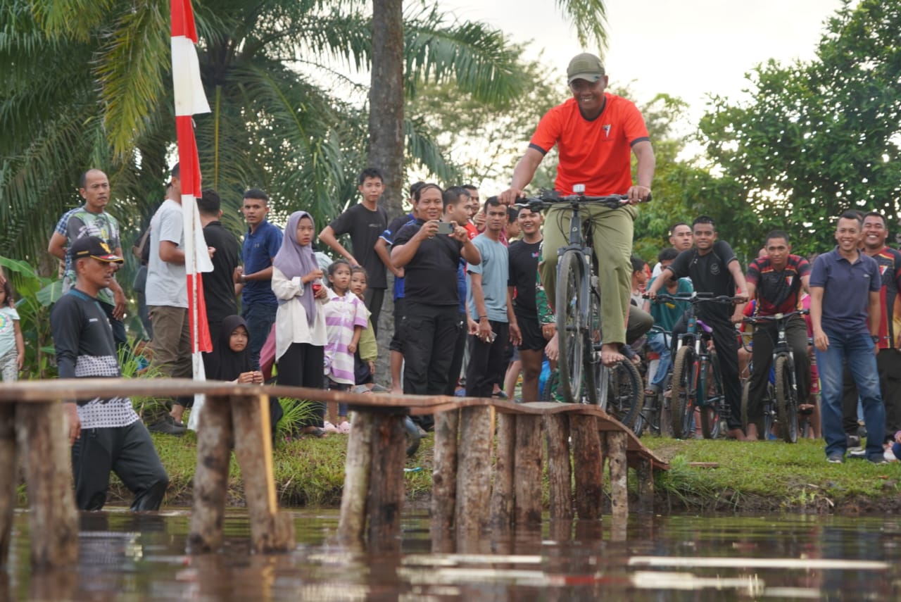 Lomba balap sepeda di atas kolam berlangsung dengan aman, tertib, dan penuh keceriaan. Peserta yang berhasil mencapai garis finis diberikan hadiah menarik sebagai bentuk apresiasi atas usaha dan keberanian mereka.
