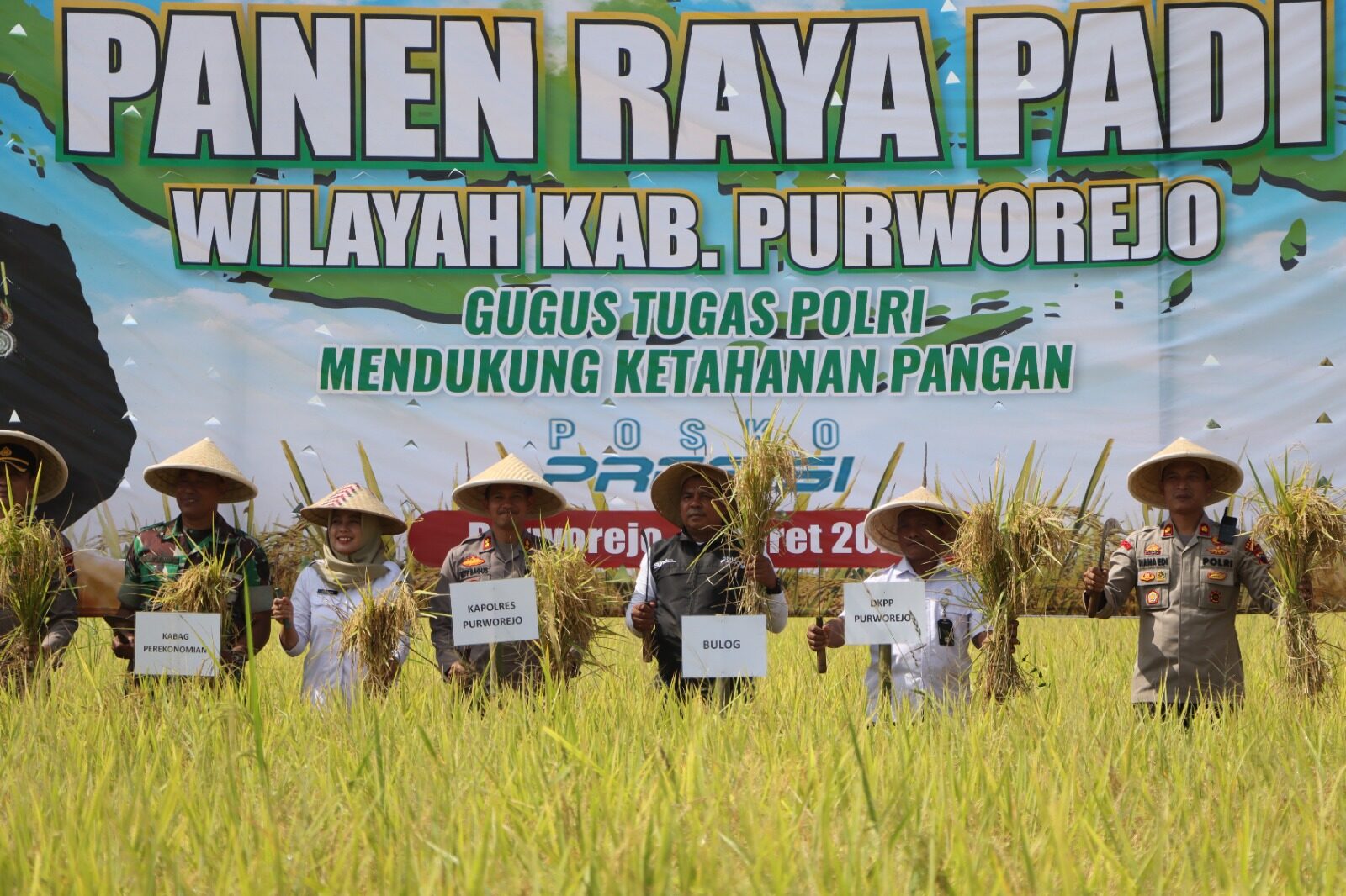INLINK, Purworejo | Dalam upaya mendukung program Ketahanan Pangan Nasional tahun 2025, Polres Purworejo melaksanakan Panen Raya Padi di lahan sawah Desa Sumber Rejo, Kecamatan Purwodadi, Kabupaten Purworejo pada Rabu, 5 Maret 2025. Kegiatan ini dimulai pukul 08.00 WIB dan dipimpin langsung oleh Kapolres Purworejo, AKBP Edy Bagus Sumantri, S.I.K., didampingi Wakapolres Purworejo, Kompol Nana Edy Sugito, S.H., serta para Pejabat Utama (PJU) Polres Purworejo.