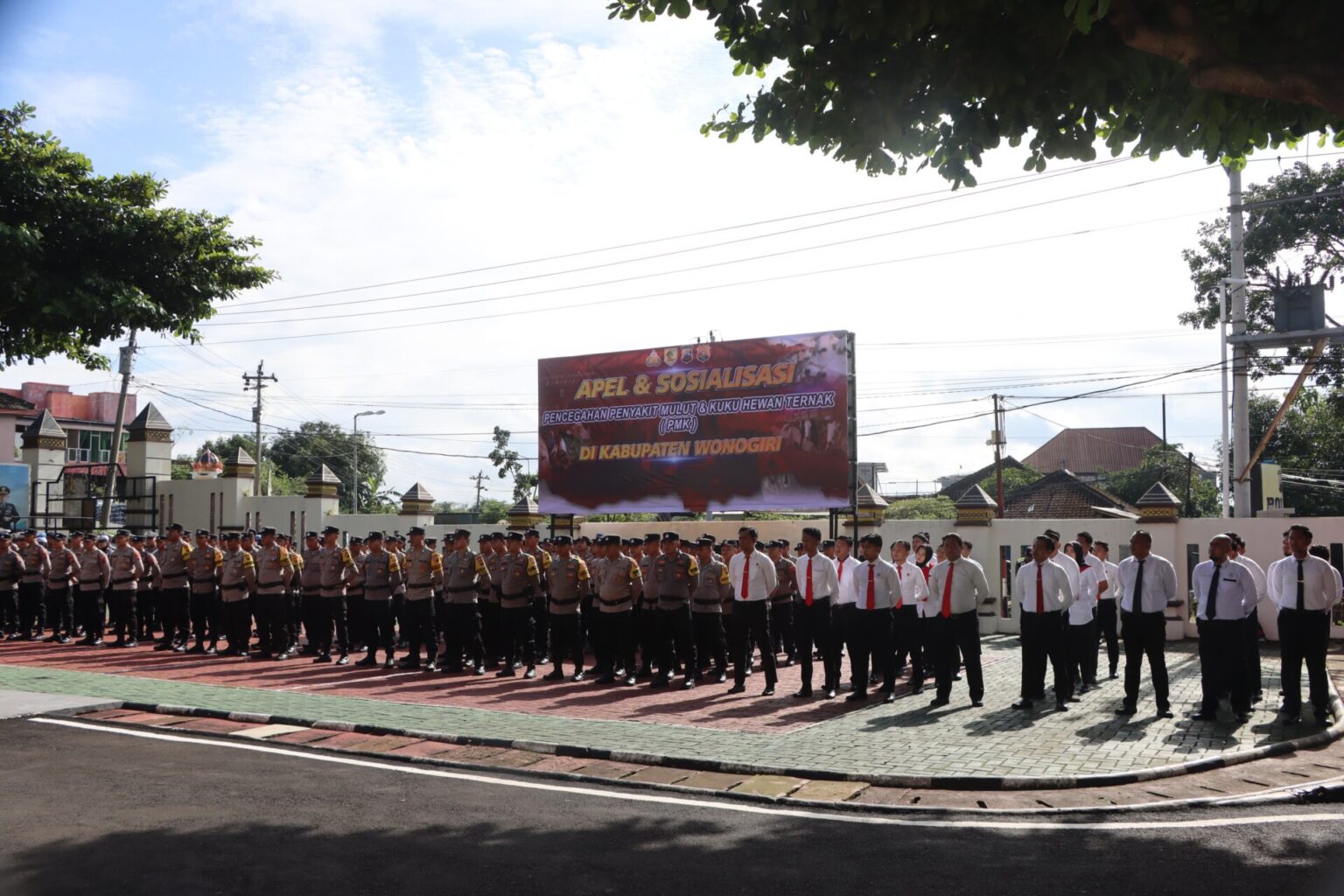INLINK, Wonogiri – Upaya menekan penyebaran penyakit mulut dan kuku (PMK) pada hewan, Polres Wonogiri di bawah kepemimpinan Kapolres AKBP Jarot Sungkowo, S.H., S.I.K., menggandeng Pemerintah Daerah (Pemda) untuk menggelar apel jam pimpinan dan sosialisasi pencegahan PMK.