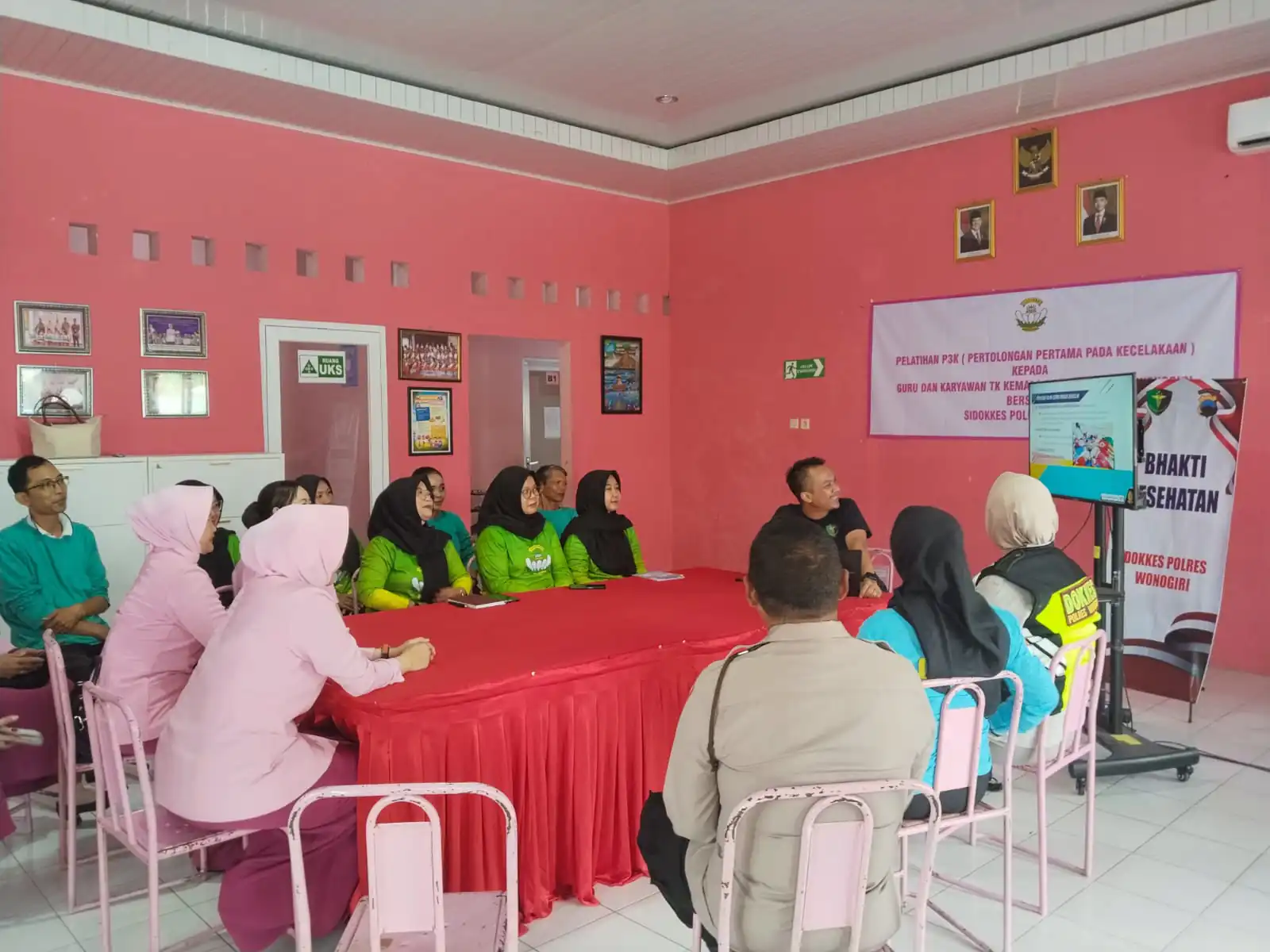 Kasidokkes Polres Wonogiri Penda Sulistyowati, S.Kep., Ns., menyampaikan, tujuan dari kegiatan ini adalah memberikan pengetahuan dasar mengenai penanganan awal terhadap cedera atau sakit yang mungkin terjadi di lingkungan sekolah.