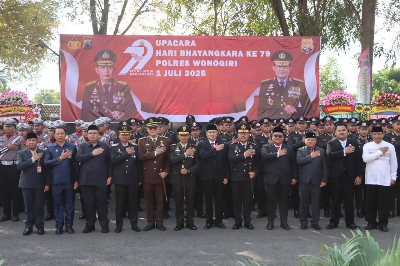 INLINK, Wonogiri – Polres Wonogiri menggelar upacara peringatan Hari Ulang Tahun (HUT) Bhayangkara ke-79 di halaman GOR Giri Mandala, Kabupaten Wonogiri, pada Selasa (1/7/2025).