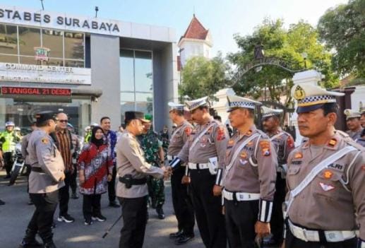 INLINK,SURABAYA | Apel gelar pasukan Operasi Lilin Semeru 2023 digelar di Mapolrestabes Surabaya, Kamis, (21/12/2023.