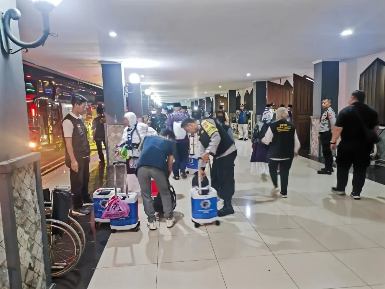 Rangkaian penyambutan diisi dengan prosesi penerimaan resmi yang digelar pukul 05.00 WIB, dan turut dihadiri secara virtual oleh Menteri Agama RI, Prof. Dr. H. Nassarudin Umar, M.A., serta sejumlah perwakilan dari instansi terkait. Setelahnya, dilakukan pembagian air Zamzam dan koper jamaah secara tertib.