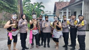 Berkostum Punokawan, Polres Sukoharjo Ajak Masyarakat Wujudkan Pemilu yang Aman dan Damai
