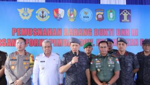 INLINK,PONTIANAK | Pangdam XII/Tanjungpura Mayjen TNI Iwan Setiawan, S.E., M.M., menghadiri pemusnahan barang bukti Narkotika golongan I berupa Sabu seberat ± 58.877,98 gram. Pemusnahan berlangsung di BNN Kota Pontianak, Jl Sultan Hamid II, Kec. Pontianak Timur, Kota Pontianak, Kalimantan Barat,Rabu (15/11/2023). Pemusnahan barang bukti digelar oleh BNN RI dengan dihadiri Pj. Gubernur Kalbar, Deputi Pemberantasan […]