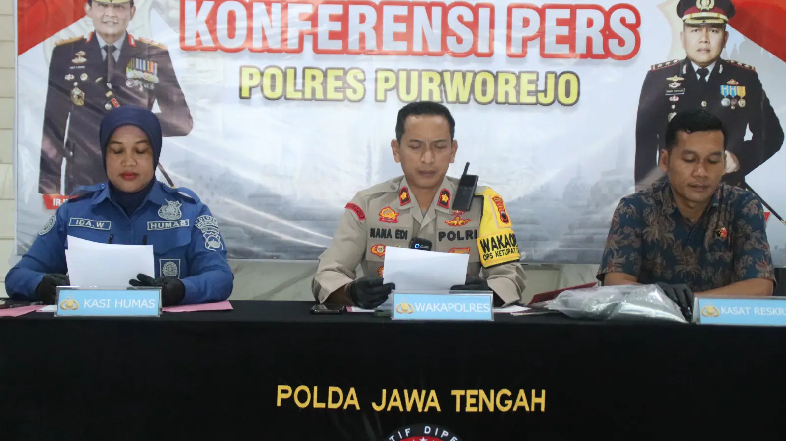 INLINK, Purworejo – Polres Purworejo menggelar konferensi pers terkait pengungkapan kasus tindak pidana kepemilikan bahan peledak yang digunakan untuk pembuatan mercon. Kegiatan tersebut dipimpin oleh Wakapolres Purworejo Kompol Nana Edi Sugito, S.H., didampingi Kasat Reskrim AKP Dwiyono, S.H., M.H., serta Kasi Humas AKP Ida Wida Astuti, S.H., M.A.P.