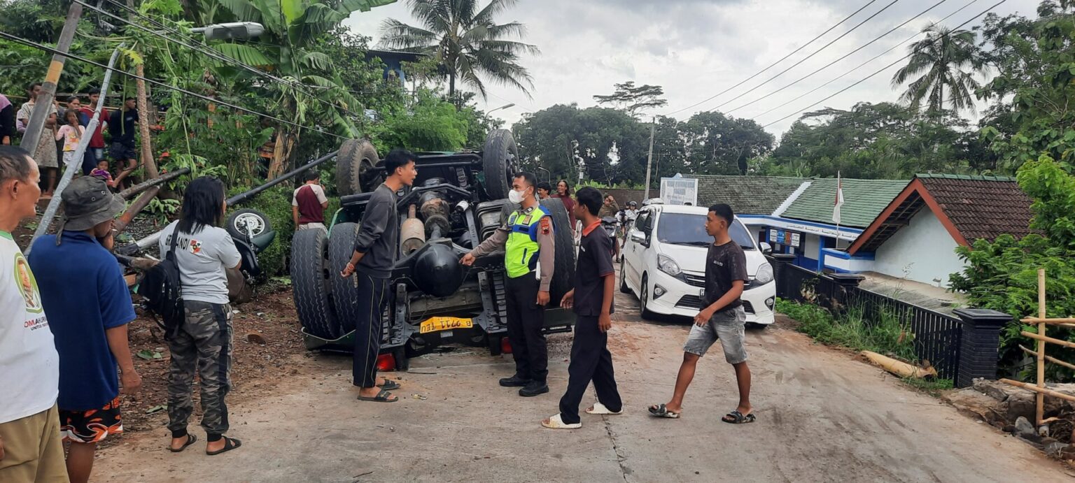 “Truk berhenti setelah menabrak halaman rumah warga dan terbalik.” Tambahnya.