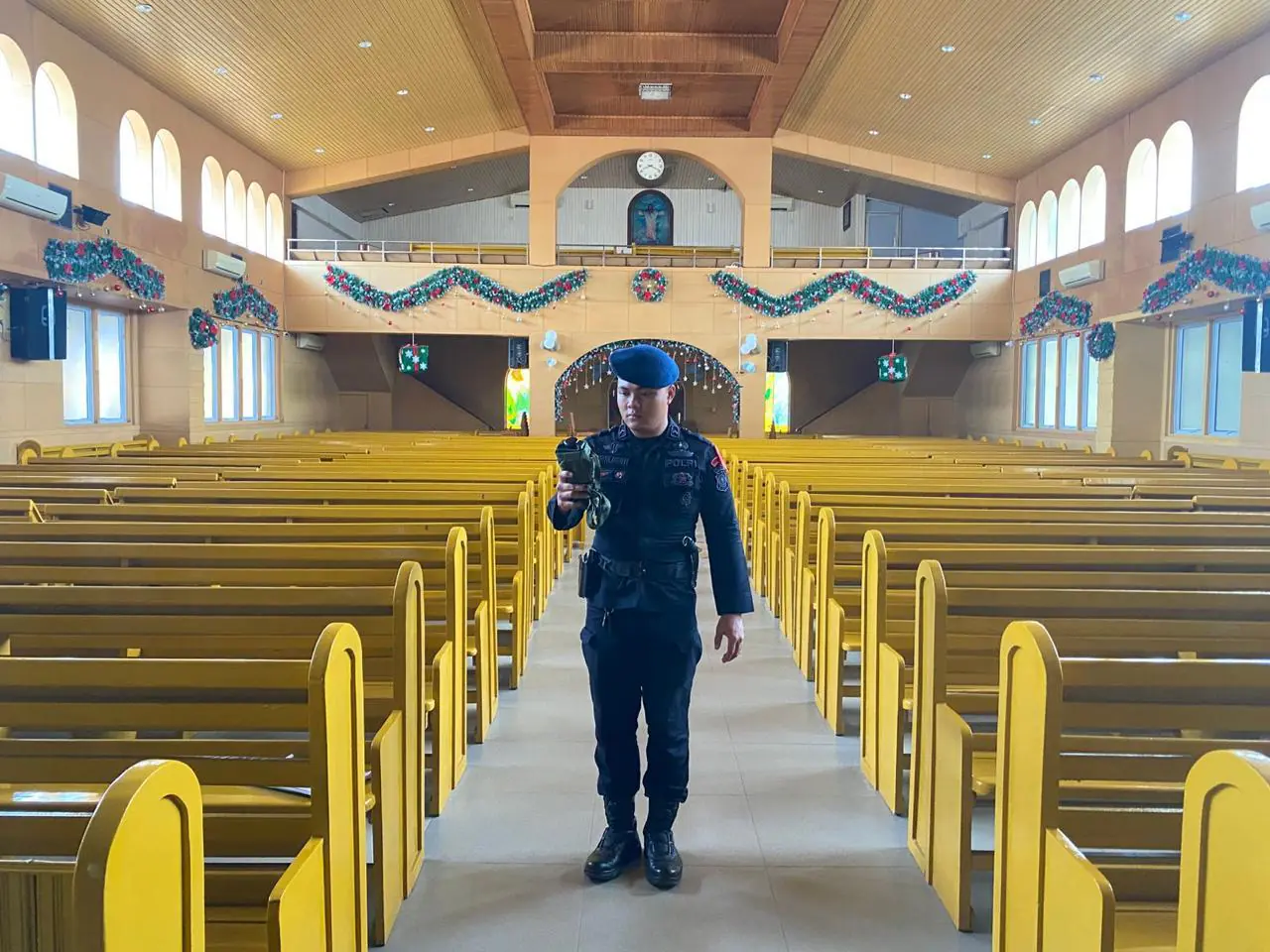 Pelaksanaan sterilisasi dilakukan secara menyeluruh, mulai dari area luar gereja, ruang ibadah, hingga fasilitas pendukung lainnya. Hal ini bertujuan untuk memastikan situasi benar-benar aman dan kondusif sebelum pelaksanaan ibadah Natal berlangsung.