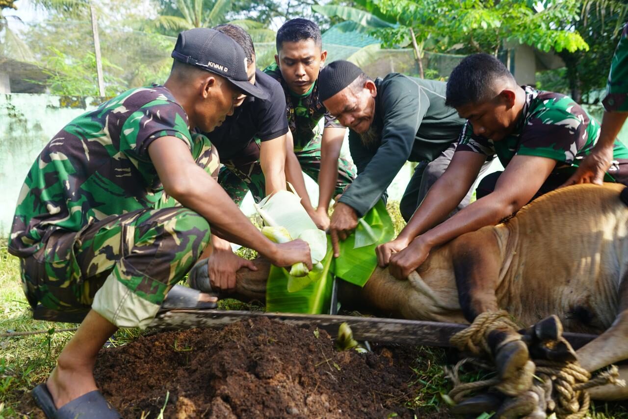 Meulaboh, Dalam rangka menyambut bulan suci Ramadhan 1446 H, Korem 012/Teuku Umar melaksanakan tradisi Meugang dengan menyembelih sapi untuk dibagikan kepada para prajurit TNI dan PNS Korem 012/TU.