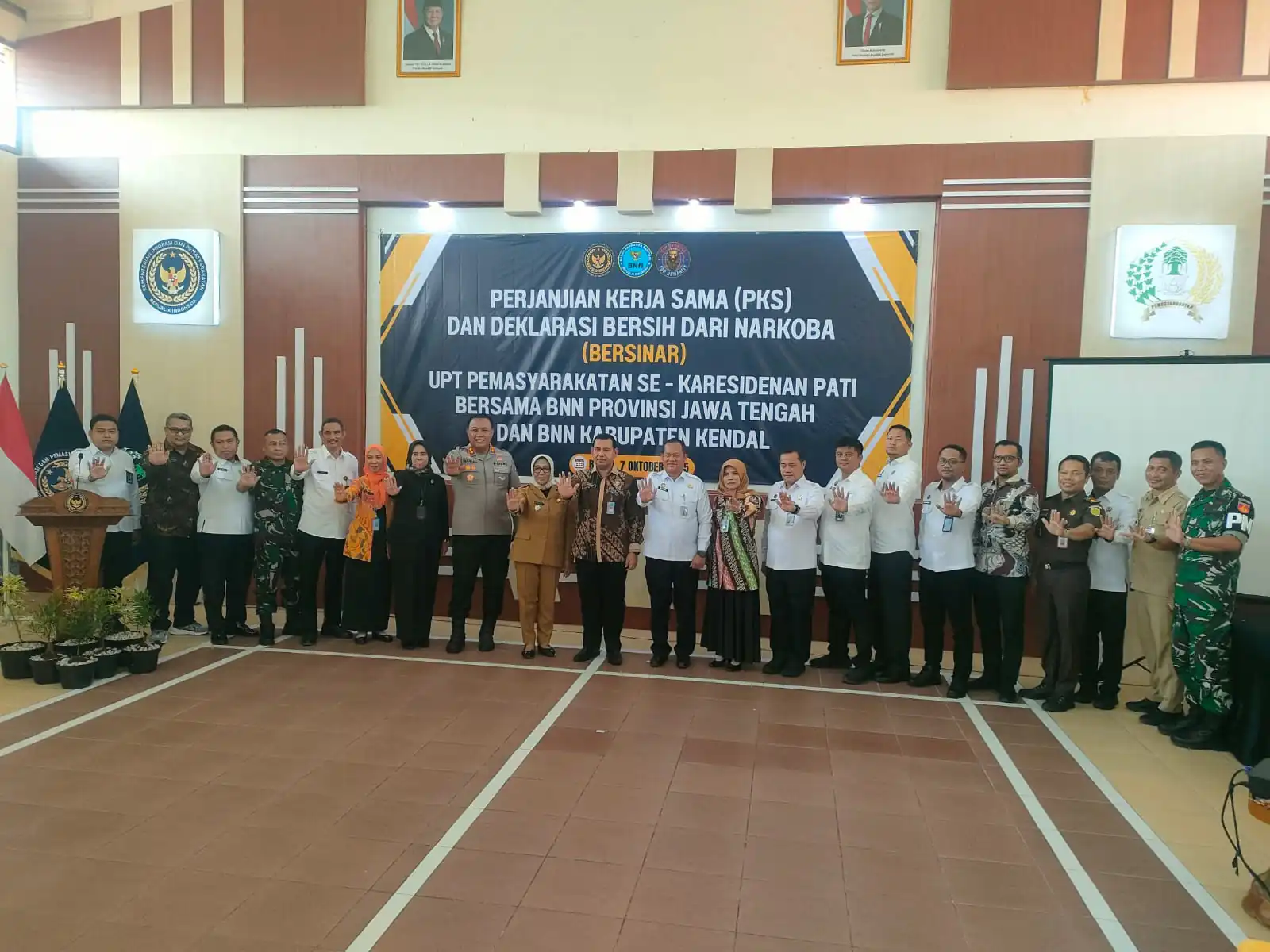 Deklarasi Bersinar menjadi wujud nyata komitmen bersama untuk memperkuat upaya pencegahan dan pemberantasan penyalahgunaan narkoba, khususnya di lingkungan Pemasyarakatan. Dalam kegiatan ini, Kabapas Pati bersama para Kepala UPT Pemasyarakatan menandatangani komitmen bersama mendukung program “Indonesia Bersih Narkoba Menuju Indonesia Emas 2045.”