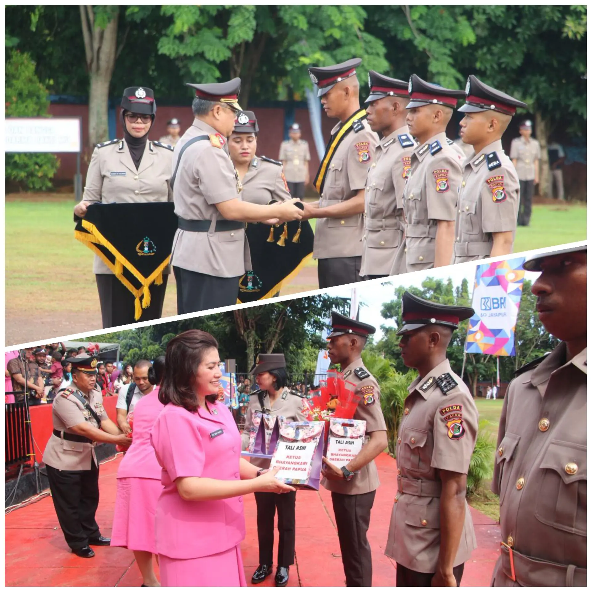 Usai pelaksanaan upacara, Ketua Pengurus Daerah Bhayangkari Papua melalui Wakil Ketua Bhayangkari Daerah Papua, Ny. Riri Faizal Ramadhani, menyerahkan Tali Asih “Bhayangkari Peduli” kepada lima Bintara Polri Orang Asli Papua sebagai bentuk perhatian dan dukungan moril.